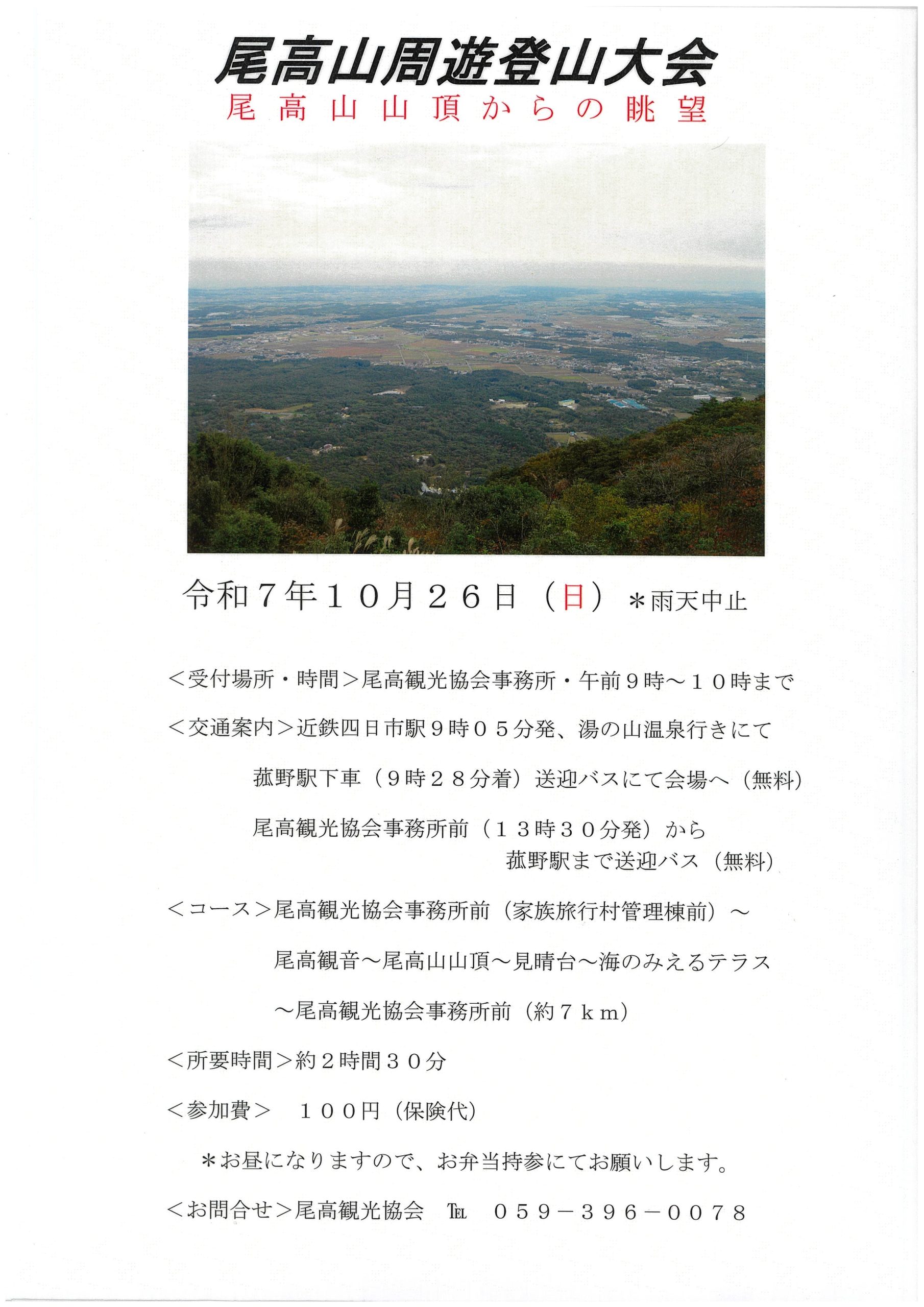 ◎お問合せ 尾高観光協会 TEL059-396-0078