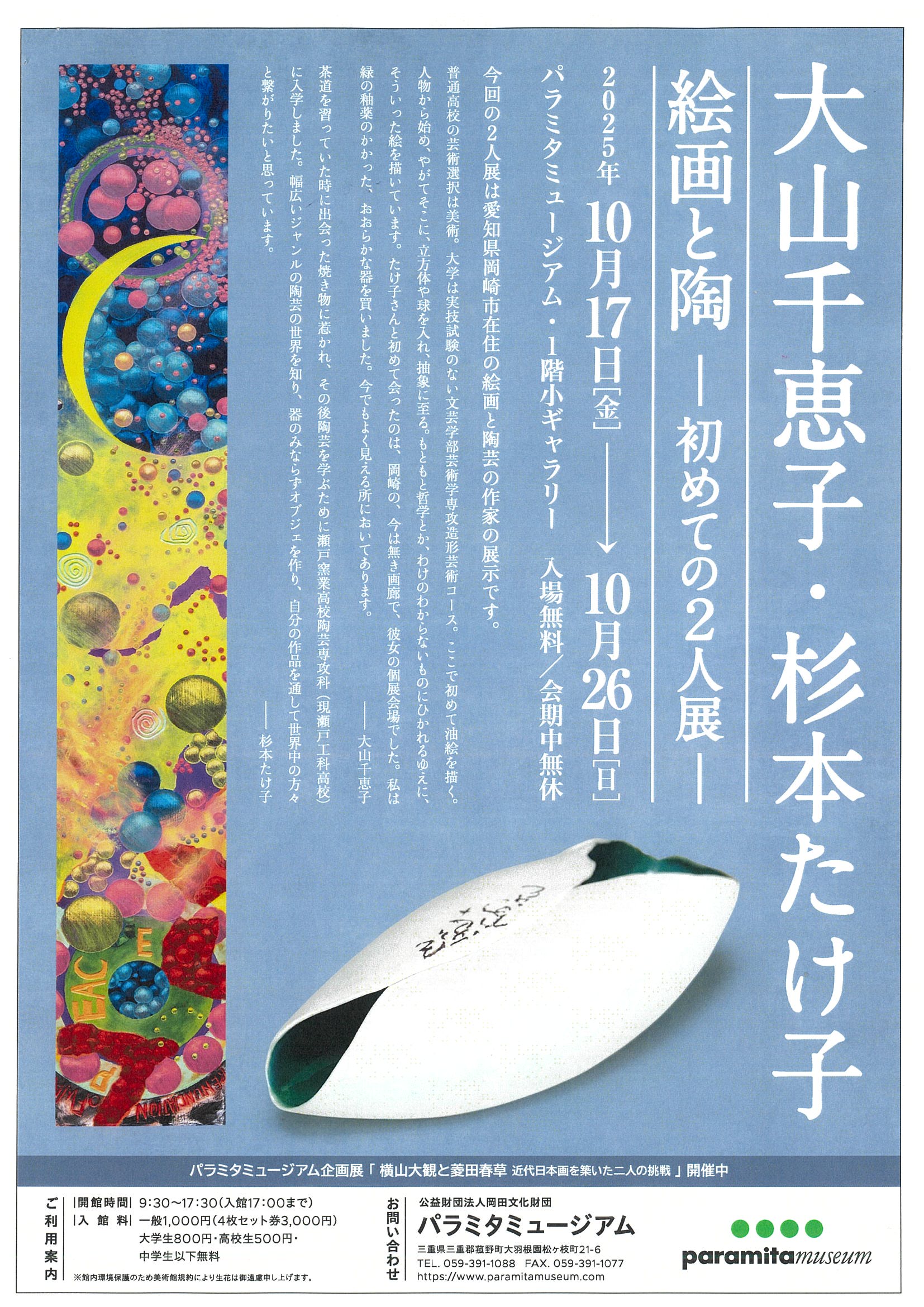 🖼今回の2人展は、愛知県岡崎市在住の絵画と陶芸の作家の展示です。