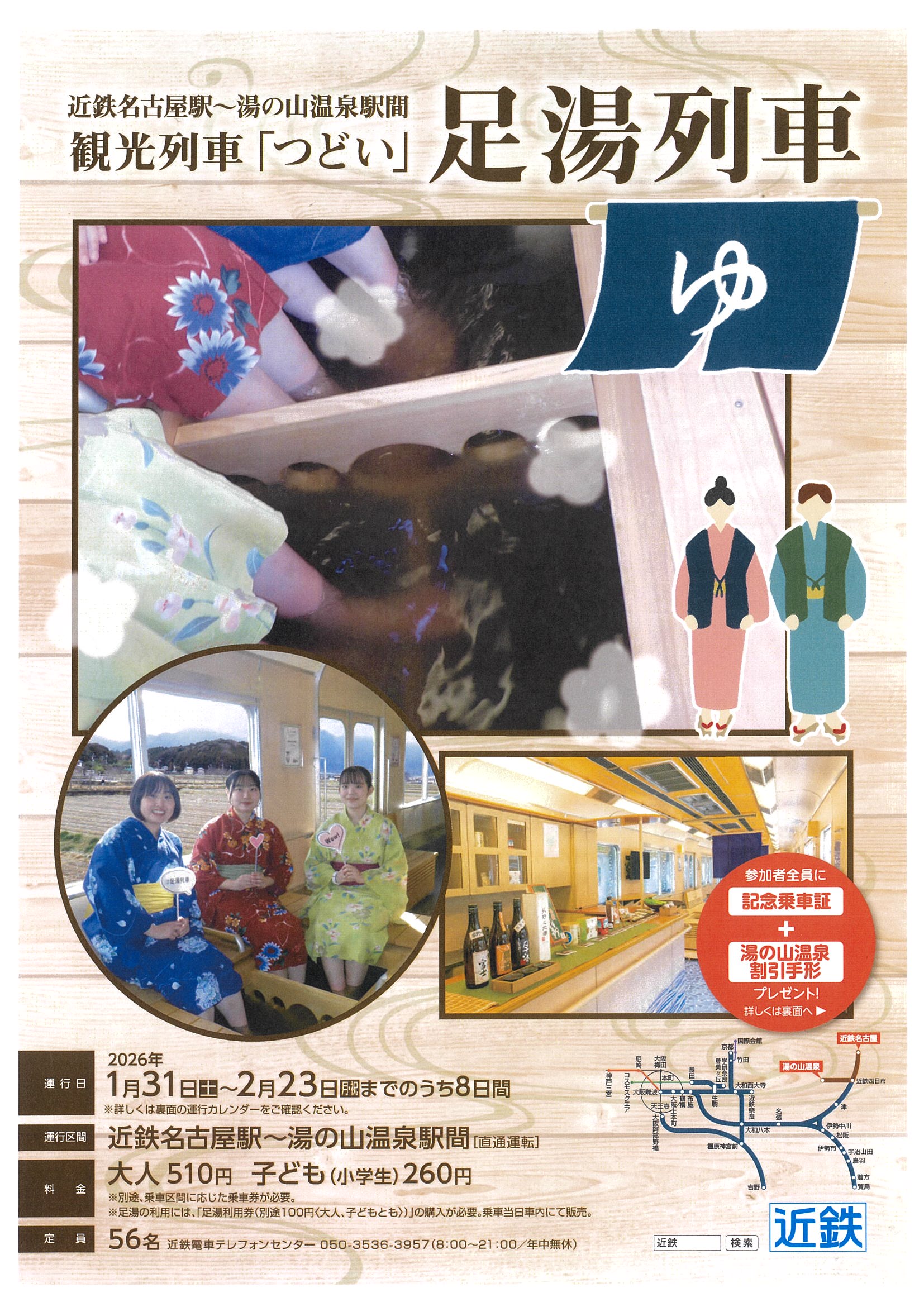 足湯列車で温まりながら、菰野町湯の山温泉へぜひお出かけください♨