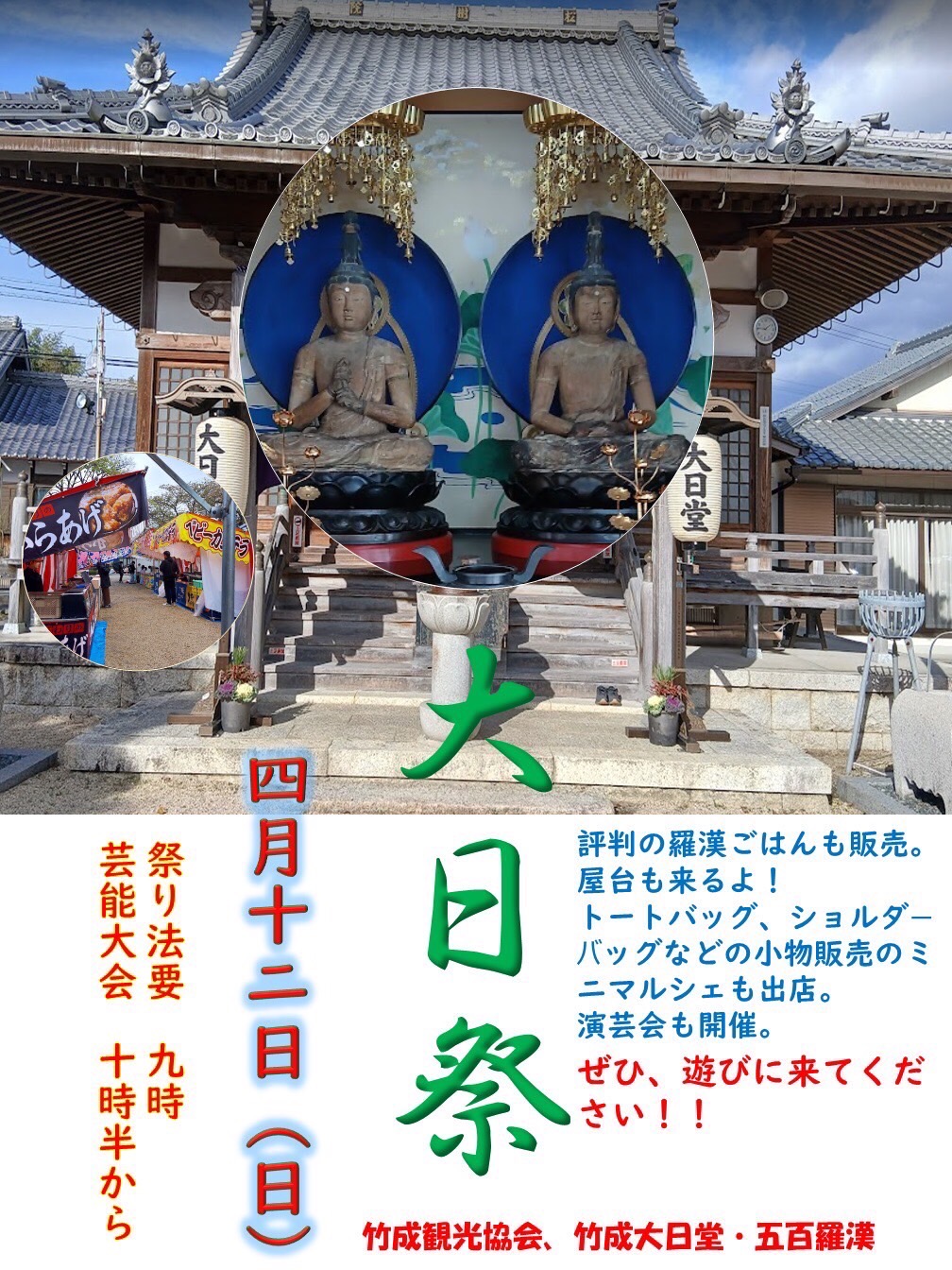 大日祭 :令和8年4月12日(日) 祭り法要 9:00~  芸能大会 10:30~