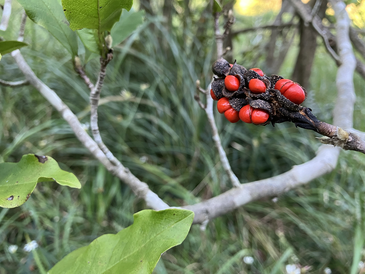 9月だとシデコブシの種が赤くなる。この湿地で異彩を放ち目立っていた。