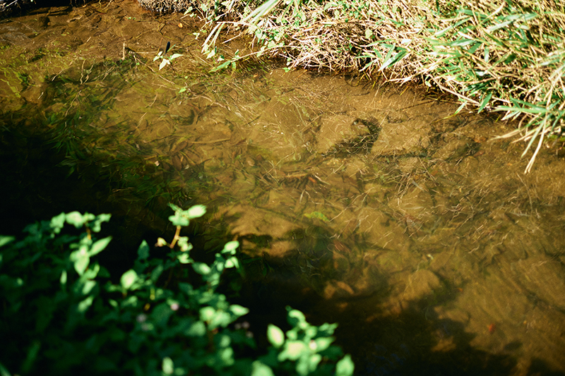 橋から川を覗くと小魚がたくさん泳いでいた。カワムツやアブラハヤだろうか。山の源流も良いが、町を流れる川も趣がありずっと眺めていられる。