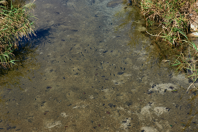 文化財巡りも楽しんだので、サイクリングしながらもと来た道を走っていると田光川でまたもや小魚の群れが目に入った。
