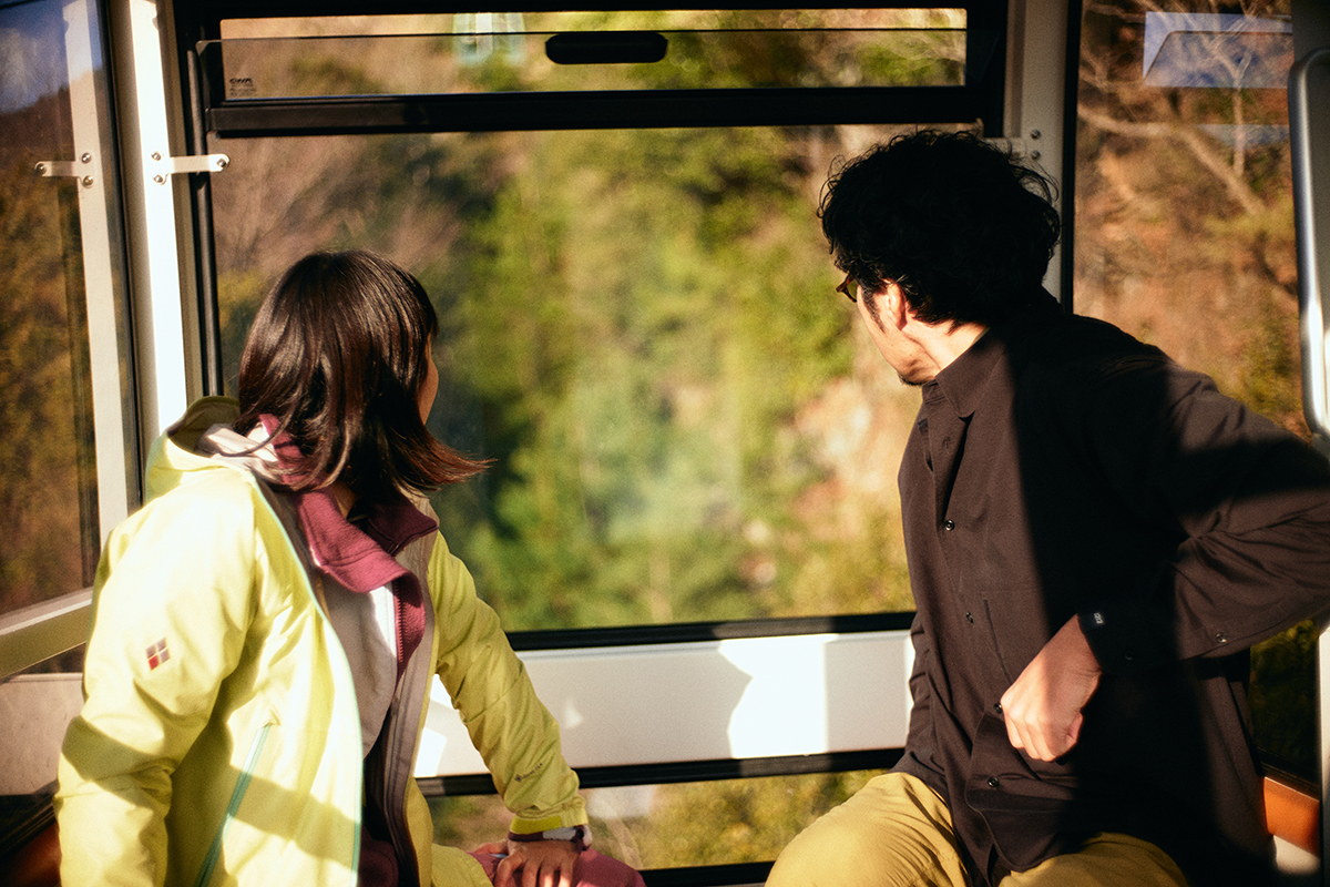 一気に銀世界へ!と言いたいところだがロケを行った日は1月中頃にしては気温がかなり高かった。ゴンドラから見える景色はまだ秋の延長だった。