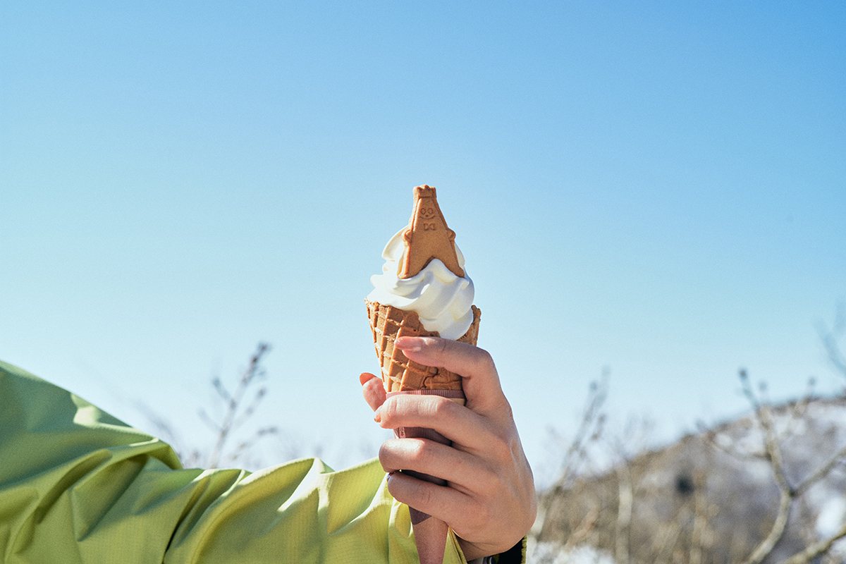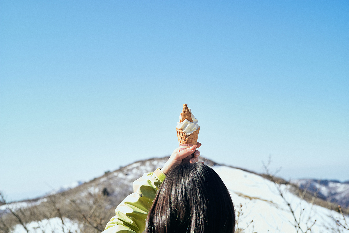 これを食べてしまったらプラマイ0どころかプラスしかない笑。白鉄塔がモチーフのキャラクター「ブラン」のクッキーがソフトクリームの上にトッピングされて可愛い。記念にこんな写真を撮ってみるのも良い。御在所に行かれたらお試しあれ。
